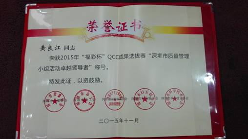 深圳市2015年質(zhì)量管理小組活動優(yōu)秀成果、優(yōu)秀企業(yè)和先進(jìn)個(gè)人獎是由深圳市質(zhì)量協(xié)會、深圳市總工會、共青團(tuán)深圳市委員會、深圳市婦女聯(lián)合會和深圳市科技技術(shù)協(xié)會聯(lián)合審定,旨在表彰在2015年深圳市質(zhì)量管理小組活動中涌現(xiàn)出的優(yōu)秀企業(yè)、QC小組和個(gè)人。