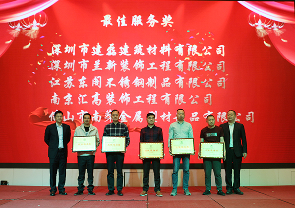 深圳市建磊建筑材料有限公司、深圳市蘭新裝飾工程有限公司、江蘇東閣不銹鋼制品有限公司、南京匯高裝飾工程有限公司、佛山市南燊金屬型材制品有限公司