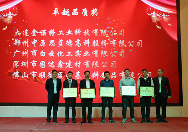 大連金諾格工業(yè)科技有限公司、鄭州中原思藍德高科股份有限公司、廣州市白云化工實業(yè)有限公司、深圳市固達鑫建材有限公司、佛山市順德區(qū)榮基塑料制品有限公司