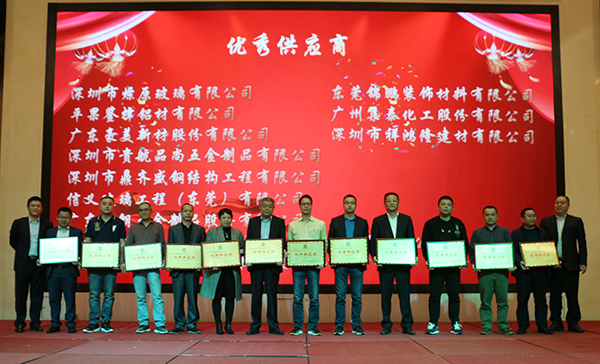 合作伙伴大會期間對在過去一年在與方大建科合作中有突出貢獻的合作伙伴頒發(fā)榮譽獎項,會上,方大建科合作進步獎、最佳服務(wù)獎、卓越品質(zhì)獎、優(yōu)秀供應(yīng)商、金牌合作伙伴供應(yīng)商五項大獎,東莞南玻工程玻璃有限公司等33家企業(yè)受到榮譽表彰。
