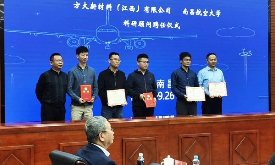方大江西新材向南昌航空大學(xué)科研合作人員頒發(fā)科研顧問聘任證書